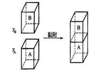 第一種方式,黏附方式。兩種不同的液體,液體A和液體B,互相相接觸后,兩者和氣體形成的表面同時(shí)消失,形成液體A和液體B之間的界面,也就是液液界面(AB)的過程,這就是黏附過程。該過程如圖2所示。