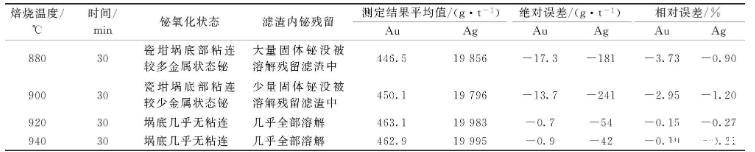 粗鉍是鉍精煉過程中的中間產(chǎn)物,粗鉍中含有鉛、銀、金、砷、銻、碲等[1],準(zhǔn)確測(cè)定粗鉍中金、銀含量對(duì)于指導(dǎo)生產(chǎn)和回收貴金屬具有重要意義。高鉍物料中金、銀測(cè)定一般沿用火試金重量法[2-3],主要是控制試料中鉍的含量,減少鉍對(duì)火試金的影響,為了減少合粒中鉍的殘留,消除鉍圈對(duì)合粒影響,控制樣品中鉍含量為0.50 g為宜[4-6],對(duì)于粗鉍來說,稱樣量太小,不能準(zhǔn)確測(cè)定樣品中金、銀含量。實(shí)驗(yàn)證明可以先把鉍焙燒氧化,然后用乙酸除去鉍氧化物中的鉍[7-8],再用火試金重量法測(cè)定物料中金、銀含量[5]。本方法精密度高,準(zhǔn)確度好,可用于粗鉍中金、銀含量的測(cè)定。