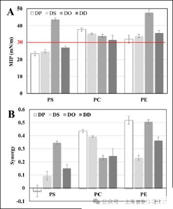 不同濃度藥物混合物的表面壓力反應(yīng)了其在水-氣界面的表面活性行為,最大極限濃度代表藥物在緩沖液中的最大溶解度。表面壓力通過Kibron Delta 8多通道微量張力儀測試。測試樣品之前通過Milli Q超純水對儀器進行校正,然后進行有效性檢測,該檢測用以分析不同微槽測試數(shù)據(jù)之間的偏差,確保所有測試表面張力在一定偏差范圍內(nèi)。