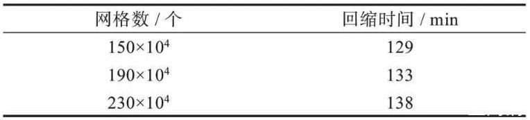 表2網格數與回縮時間表