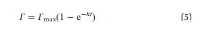 當系統接近飽和時,G(t) 的下降必須 隨著表面變得擁擠,請減速。 的濃度 吸附在表面下方,然后失去平衡 與吸附的物種和動力學受到限制 吸附屏障。 然后一級動力學過程導致: