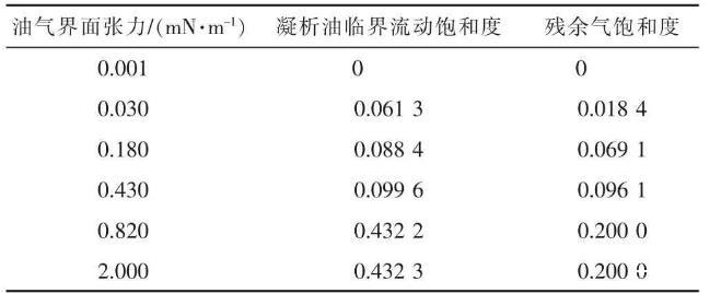 表1凝析油臨界流動(dòng)飽和度及殘余氣飽和度