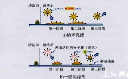 圖1納米乳液和常規表面活性劑除油機理對比