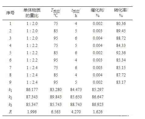 表1正交實(shí)驗(yàn)優(yōu)化反應(yīng)條件