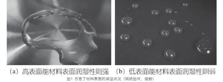 圖1示意了材料表面的潤濕狀況(網絡,侵刪)