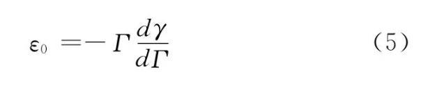 擴張彈性全頻率譜上高頻平臺值稱為極限擴張彈性(ε0),其物理化學意義是當頻率足夠大、所有界面弛豫過程均可忽略時的擴張彈性,如式(5)所示。