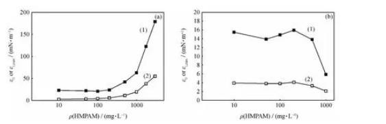 (2)在油-水體系中,原油酸性組分分子與HMPAM分子的疏水部分相互作用,阻礙界面網絡結構的形成,大大降低了界面膜的擴張彈性和擴張黏性。