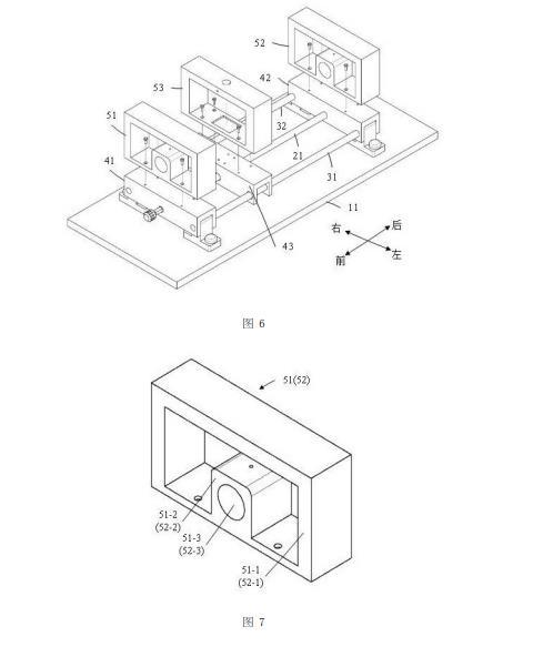 圖5為基于懸滴法測量液體表面張力系數的測量裝置的平移組件、導軌組件、以及門形組件部分的爆炸示意圖;