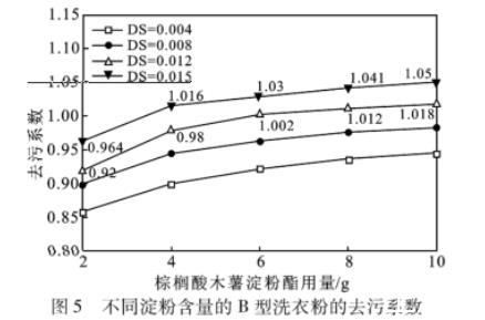 圖5不同淀粉含量的B型洗衣粉的去污系數