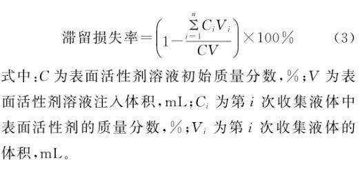 式中:C為表面活性劑溶液初始質(zhì)量分數(shù),%;V為表面活性劑溶液注入體積,mL;Ci為第i次收集液體中表面活性劑的質(zhì)量分數(shù),%;Vi為第i次收集液體的體積,mL。