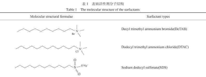 表1表面活性劑分子結(jié)構(gòu)