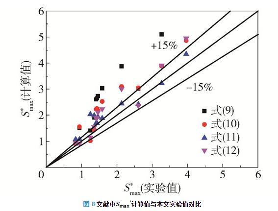 $ S_{\max }^{*}=0.203 R e^{0.064} W e^{0.43} $ (15)