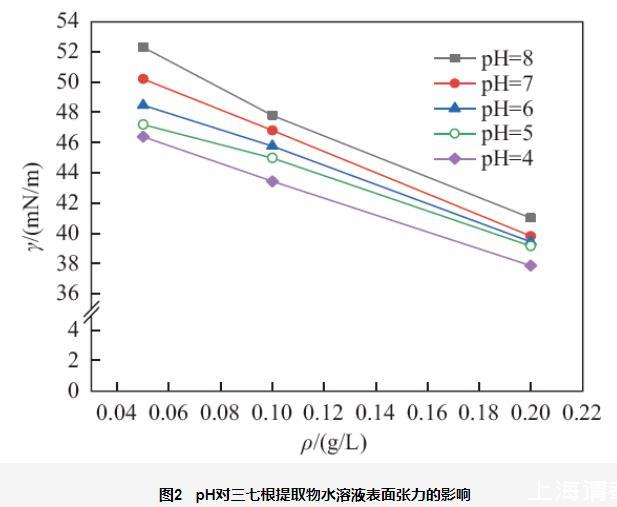 不同質量濃度、pH、鹽度對三七根提取物水溶液表面張力的影響(二)