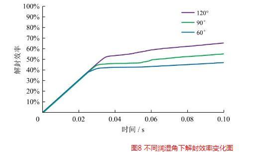 圖8不同潤濕角下解封效率變化圖
