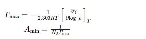 通過(guò)鉑環(huán)法在室溫下進(jìn)行表面張力測(cè)定,參考GB/T 5549-2010。繪制出表面張力-濃度對(duì)數(shù)(γ-lg c)曲線。使用公式(1)和(2)對(duì)飽和吸附量(Гmax)和單個(gè)分子占據(jù)最小表面積(Amin)進(jìn)行計(jì)算。