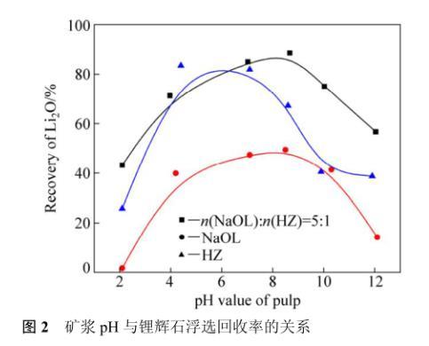 圖2礦漿pH與鋰輝石浮選回收率的關系