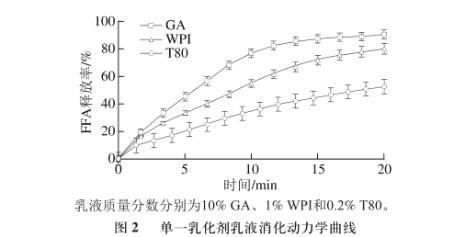 圖2單一乳化劑乳液消化動(dòng)力學(xué)曲線(xiàn)