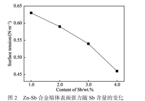 2.1 Sb對鋅液表面張力的影響