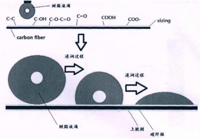 樹脂對碳纖維表面的浸潤性影響因素有很多。碳纖維表面的比表面積的大小,碳纖維表面的溝槽結構或纖維表面的活性基團的數量和種類,均對碳纖維的浸潤性有影響。
