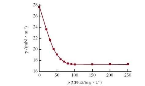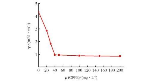 25℃條件下,CPFE水溶液的表面張力與質量濃度的關系曲線如圖1所示。