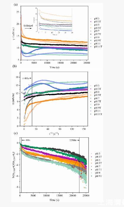 預實驗驗證蛋白質在界面的吸附行為:通過動態界面張力曲線(γ-t)判斷是否達到平衡(斜率趨近于0),若長時間不穩定(如持續下降),可能是蛋白質未完全溶解或溶液中有雜質。