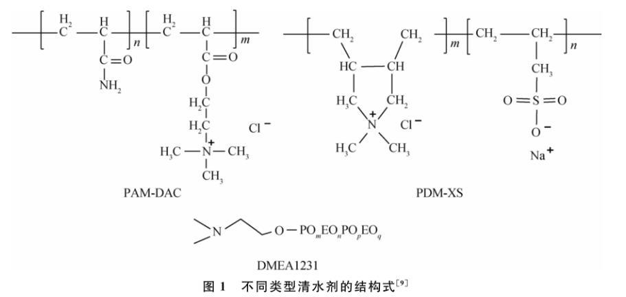 陽離子清水劑PAM-DAC由SNF公司提供,黏均相對分子質量為7.2×106g/mol,陽離子度為35%;兩性離子清水劑PDM-XS自制,黏均相對分子質量為1.8×106g/mol,陽離子單體與陰離子單體的質量比為92/8;非離子清水劑DMEA1231參照文獻合成,數均相對分子質量為4200 g/mol。原油,中海油研究總院提供,其四組分(飽和分、芳香分、膠質和瀝青質)參照中華人民共和國石油化工行業標準NB/SH/T0509-2010《石油瀝青四組分測定法》進行分離。驅油用疏水改性聚丙烯酰胺(HMPAM),中海油研究總院提供。甲苯、正庚烷,均購自成都科龍化學試劑廠。