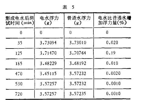 至于電水時間效應(yīng)的機(jī)理問題,特別是浮力變化大的范圍和緩慢變化范圍和水分子及水中雜質(zhì)儲能的時間長短有何關(guān)系,還需要從實驗和理論上進(jìn)一步研究。