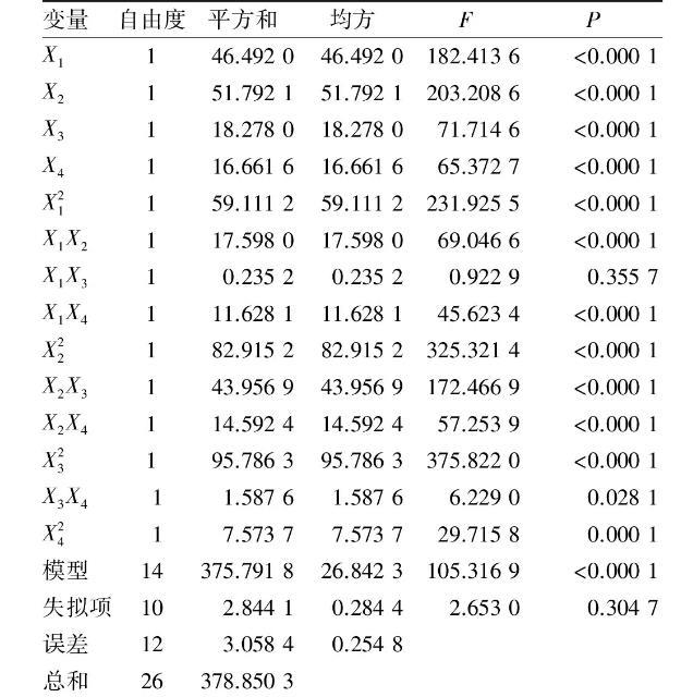 表2響應(yīng)面試驗(yàn)方案及結(jié)果