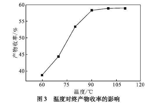 圖3溫度對(duì)終產(chǎn)物收率的影響