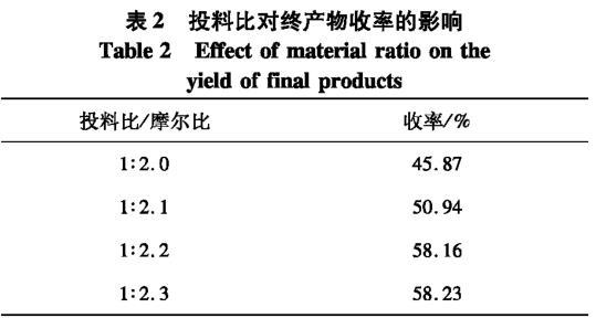 表2投料比對(duì)終產(chǎn)物收率的影響