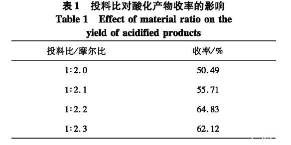 表1投料比對(duì)酸化產(chǎn)物收率的影響