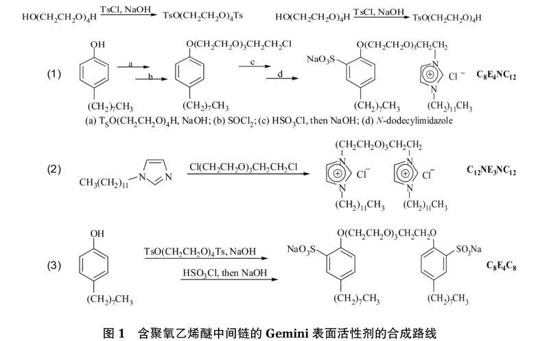 Gemini表面活性劑是具有雙親水雙親油特殊結(jié)構(gòu)的一類表面活性劑,因其結(jié)構(gòu)的特殊性和分子結(jié)構(gòu)設(shè)計(jì)的多樣性,使其在性質(zhì)和應(yīng)用方面有別于其他表面活性劑,具有表面活性更高,臨界膠束濃度(cmc)更低等特點(diǎn)。