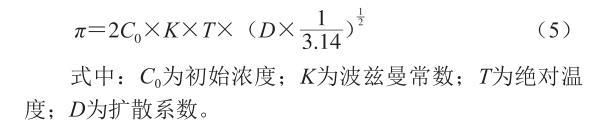 式中:C0為初始濃度;K為波茲曼常數(shù);T為絕對溫度;D為擴散系數(shù)。