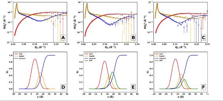 圖5、從35 mN/m處的擬合獲得的結構參數分別表示每層的厚度和水體積分數。ΔSLD(%)表示擬合SLD與理論SLD值之間的百分比差。