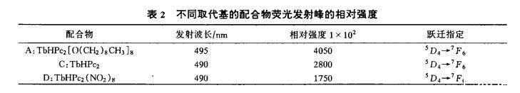 表2不同取代基的配合物熒光發射峰的相對強度