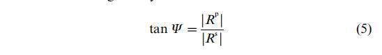 橢偏儀是一種研究表面和薄膜的技術(shù),其基礎(chǔ)是利用偏振光束從界面或薄膜反射或透射時(shí)發(fā)生的偏振變換。33在橢偏儀中,測量兩個(gè)量J和D, 式中,J是角,其切線是全反射系數(shù)大小的比率,由下式給出: