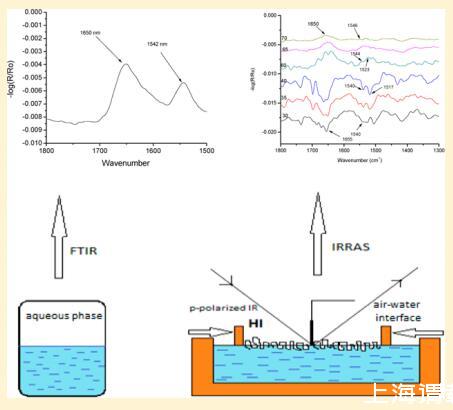 本研究為HI-Langmuir單層膜的光學(xué)性質(zhì)提供了新的數(shù)據(jù)。 紫外線 ? 空氣中的可見(jiàn)光 ? 水界面與表面壓力相關(guān) ? 面積等溫線曲線。 根據(jù)HI和FITC標(biāo)記的HI-Langmuir單層的布儒斯特角和表觀熒光顯微鏡,未觀察到二維結(jié)構(gòu)域的形成。 通過(guò)IRRAS測(cè)量,人們觀察到蛋白質(zhì)在2-D中保持α-螺旋構(gòu)象,知道IRRAS方法允許檢測(cè)酰胺I和酰胺II帶,這與蛋白質(zhì)樣品中的α-螺旋和β-折疊相關(guān)。19,20