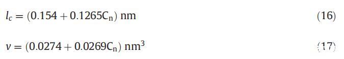 式中,v是視為流體且不可壓縮的疏水鏈的體積,lc是單體疏水鏈的長度,可使用Tanford公式計算[53]: