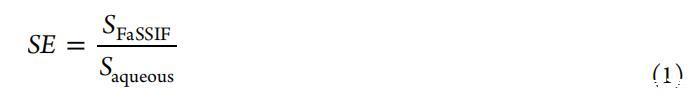 溶解度增強SE計算為在FaSSIF和水性緩沖液中測得的溶解度比率(等式1):