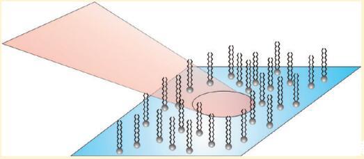在過去的幾十年中,紅外-可見和頻發生(SFG)已被證明是研究水相表面活性劑的極好工具。1.?9在該技術中,紅外激光束與可見激光束在感興趣的界面處組合,并檢測兩者的和頻光束。在中心對稱介質中,信號的產生通常是被禁止的,因此對界面上分子的存在非常敏感。如果紅外激光與界面分子的振動躍遷共振,則SFG強度增強,從而可以測量界面分子的振動光譜。SFG光譜的形狀包含有關表面活性劑的分子構象和方向的信息。大多數研究都集中在高密度單分子膜上,盡管在低密度下有令人驚訝的觀察報告。我們中的一些人(Roke等人4)以前曾報告過C?H不溶性表面活性劑DPPC(1,2-二棕櫚酰-sn-甘油-3-磷酸膽堿;見圖1)在水上的拉伸模式,密度約為100?2/分子,密度間隔小于1?2/分子,這歸因于脂質尾部的卷曲和未卷曲。最近,Chen等人9報告了DPPC在水和含有低二甲基亞砜摩爾分數的水上的CH信號在該密度附近的類似行為。此外,他們報告說,來自DPPC頭部總成的P=O振動信號僅在CH信號存在時出現。他們將CH信號的缺失/存在歸因于DPPC分子的無序/有序尾部。P=O信號的缺失可通過頭部大的取向分布來解釋。