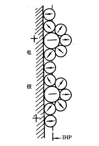 我們知道在溶液中電極表面是吸附了一層極性水分子的。就是緊密層第一層定向排列的水分子偶極層。所謂的表面活性物質(zhì)只有脫去其外部的水化膜,并且擠掉吸附在電極表面的水分子,才有可能與電極表面發(fā)生短程作用而聚集在界面,也就是成為表面活性物質(zhì)。比如在前面說緊密層結(jié)構(gòu)時候的陰離子。