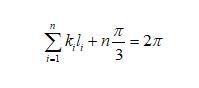 假設二維干泡沫中的任一氣泡如圖3b所示,氣泡的邊數為n,從a點開始,再回到a的邊長分別標記為l1到ln,每邊所對應的曲率為k1到kn(Plateau第一定律)。現在假設有一點從a點沿著邊向b運動,到b點時,所走的路徑為l1,轉動的角度為這條邊所對應的圓心角(向外為正,向內為負值),為k1*l1。此時要想繼續沿著邊運動,需要向內轉動π/3角度(根據Plateau第二定律),如圖3b所示。轉動后繼續運動,直到到達原來的點a。此過程,n條邊總共在頂點處轉動的角度為nπ/3,在邊上轉動的角度為