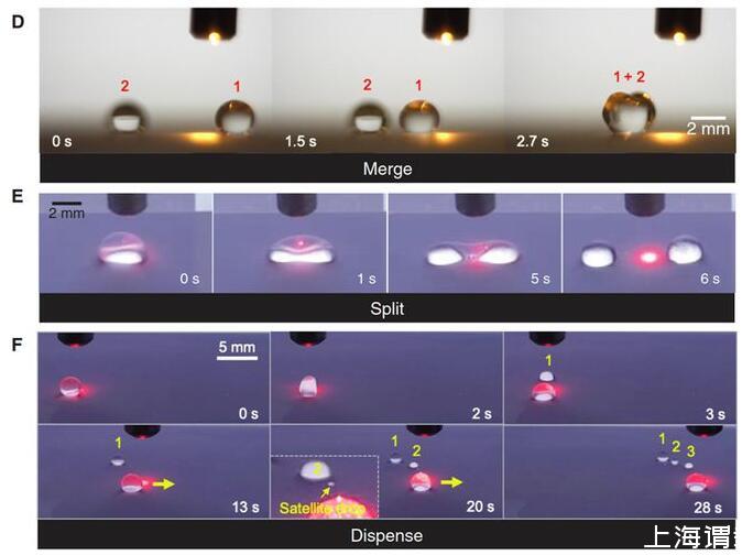 總結(jié):在單束光的作用下,光電微流控平臺(tái)可以作為一只“魔力”的防潤濕的手來移動(dòng)、切割、融合和分配任意液體,遙控且無損的精確操控液滴不僅在醫(yī)療檢測(cè)和生化分析等領(lǐng)域具有重要意義,而且在軟體機(jī)器人、3D打印、微流控加工制造等領(lǐng)域具有廣闊應(yīng)用場(chǎng)景。