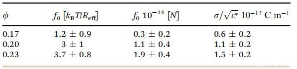在模擬中,f0以kBT/Reff為單位,這是因為Reff是距離單位,kBT是能量單位。因此,在用物理單位表示f0時,必須考慮T和Reff的不確定性。然而,經過誤差分析,我們發現Df0僅由(Df0)Df的貢獻決定。