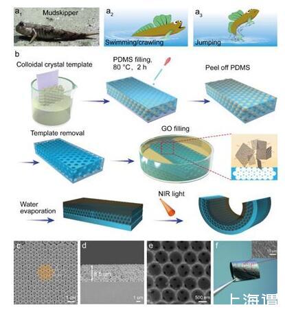 彈涂魚具有陸地爬行、水中游泳、泥中跳躍的獨特特征,是一種具有多場景適應能力和多功能驅動行為的魚類。受彈涂魚啟發,中國科學院蘭州化學物理研究所固體潤滑國家重點實驗室表面與界面研究團隊開發了一種能對各種環境做出響應的智能光驅動器。