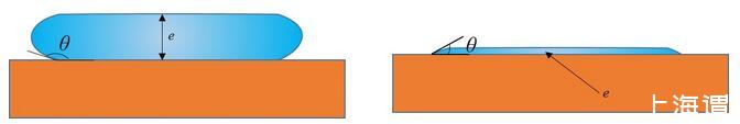 有意思的是,已經(jīng)有前人對這種情形做過詳細(xì)的受力分析。得出只要接觸角一定,此時(shí)無論加多少水,液體的厚度e都不會增加,只會增加鋪展的面積。其厚度e的表達(dá)式為: