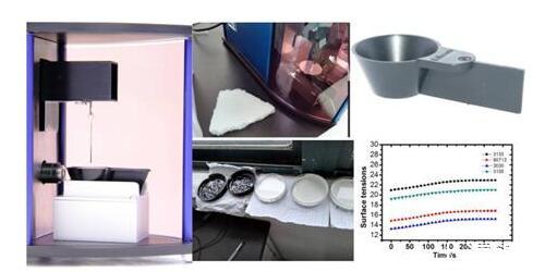 即使鉑金板或鉑金環浸入到涂料樣品中去后,在將鉑金環提出液面時,由于樣品的粘度太大,出現液體可能拉不起來;即使液體被拉起來,鉑金環也會發生形變,計算出的表面張力存在著較大的誤差。因此以前我在研究開發高粘度的涂料樣品時,一直苦惱找不到一款比較好的表面張力儀來測量高粘度的涂料樣品的表面張力。現在幸運的是,我在市面上找到了一款芬蘭Kibron公司的表面張力儀,幫我實現了對高粘度涂料樣品的表面張力的準確測量。下面我詳細介紹一下表面張力的測量過程。