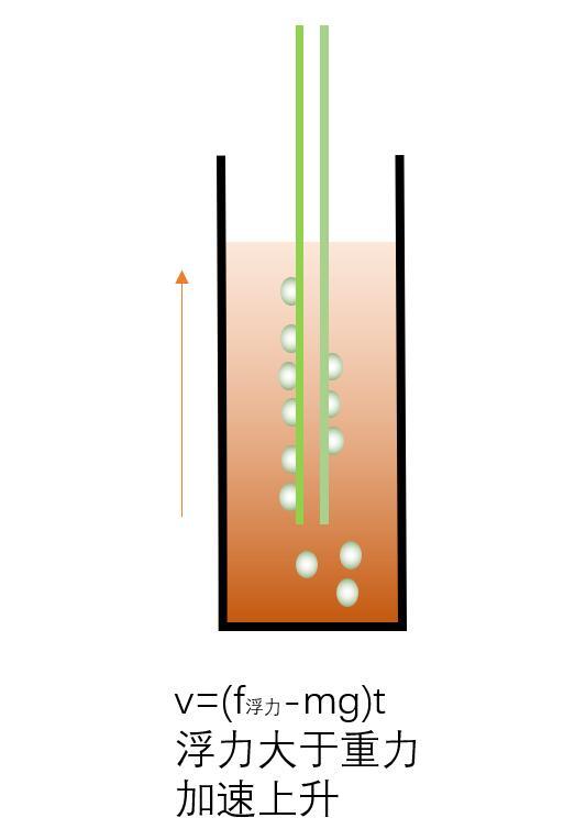 這時上升過程中,吸管可能因為左右兩側吸附的氣泡數量不同而發生浮力差異而傾斜。也可能因為外界擾動而發生傾斜,反正吸管豎直上升的可能性很小。習慣傾斜碰到瓶壁后繼續上升,上升帶來氣泡的減少,吸管自身浮力的下降。當浮力減小到小于重力時,這時開始i減速,直到速度為零。如下圖所示;