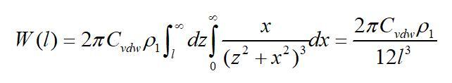 若取l為物質(zhì)本體內(nèi)分子間的距離d11,且兩半無限體為同一種物質(zhì)時(shí),則上式的互作用勢變?yōu)椋ㄈ〗^對值
