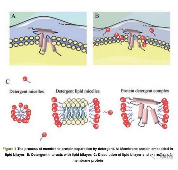 盡管新型洗滌劑在一定程度上提高了分離純化過程中MPs的穩(wěn)定性,但新舊洗滌劑都有一些共性的缺陷[28]:①對于未知性質(zhì)MPs的分離、純化和穩(wěn)定的洗滌劑選擇,需要進行廣泛篩選;②洗滌劑以形成膠束的形式分離純化MPs,常常會導(dǎo)致MPs失去與脂質(zhì)和其他蛋白質(zhì)的天然相互作用;③穩(wěn)定分離MPs效果好的洗滌劑有時會干擾下游應(yīng)用。因此,無法預(yù)測哪種洗滌劑對給定的蛋白質(zhì)最有效,需要通過反復(fù)實驗來確定。